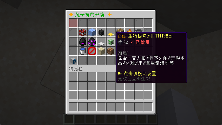 领地环境行为主要指的是一些与玩家无直接关联的事件,例如苦力怕爆炸、火焰蔓延、特定生物的生成等。 通过关闭相关的行为可以避免一些非人为情况对领地造成破坏。