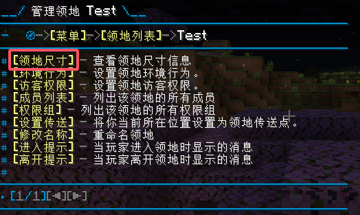 打开对应领地的管理页面,点击 【领地尺寸】,可以查看当前领地的尺寸信息: