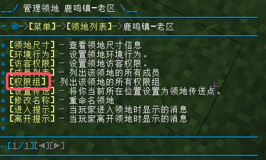 在领地的管理界面点击【权限组】,即可查看当前领地的所有权限组: