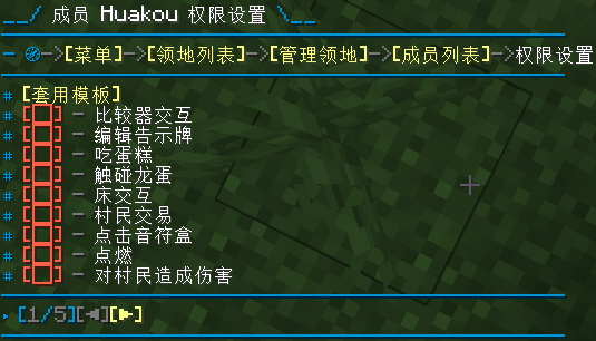 在成员列表点击对应成员前的【权限设置】即可配置此成员在领地内的权限: